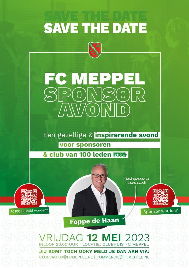 Op vrijdagavond 12 mei 2023 vindt de FC Meppel Sponsoravond plaats.