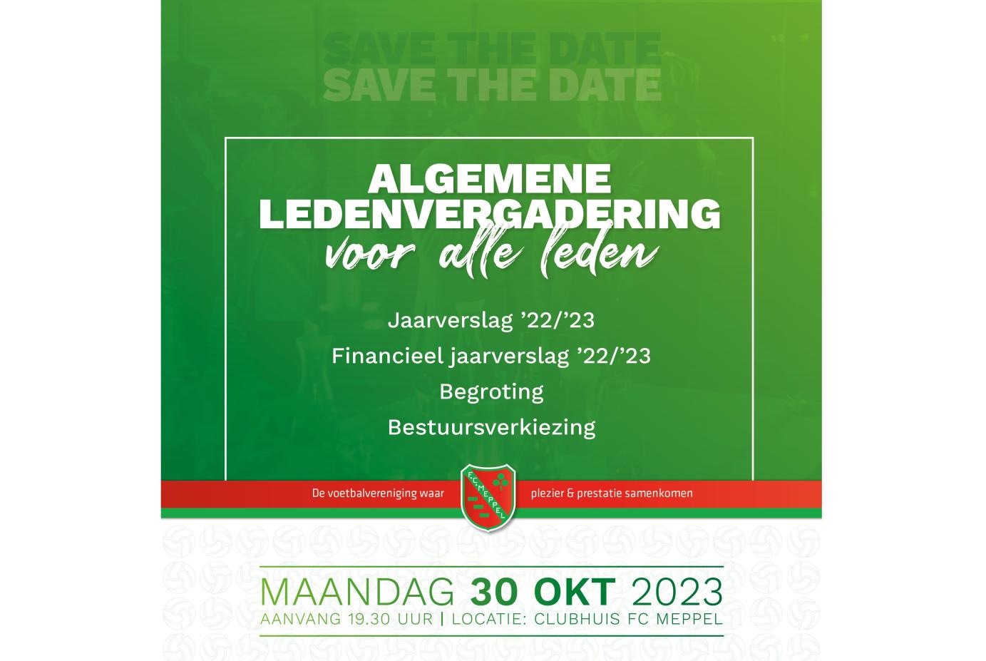 Het bestuur van FC Meppel nodigt u uit tot het bijwonen van de Algemene Ledenvergadering die