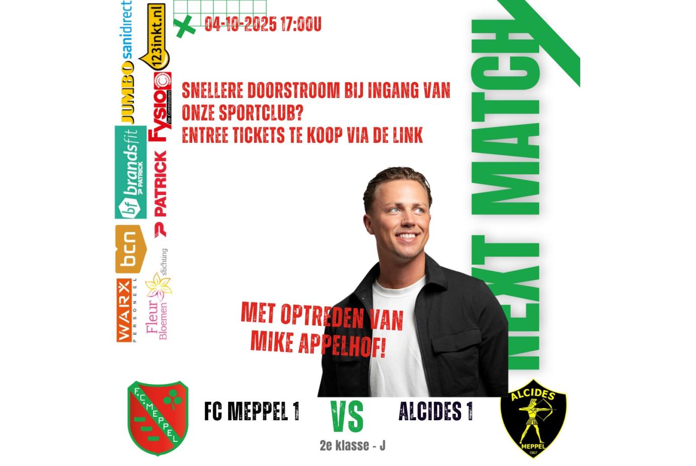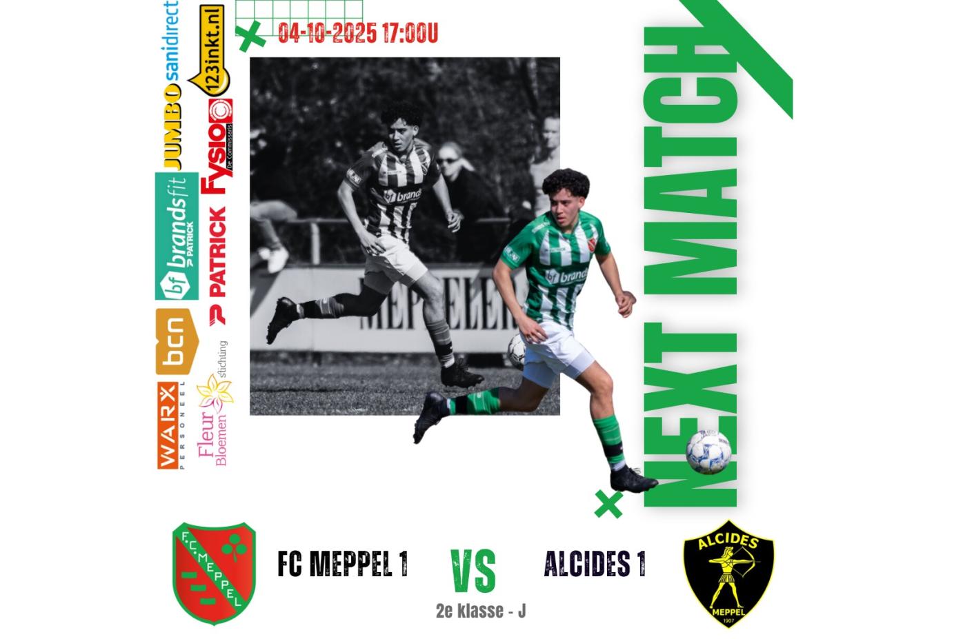 Komende zaterdag 4 oktober speelt Meppel 1 de eerste thuiswedstrijd om 17:00u op het hoofdveld. De stadsderby tegen Alcides belooft een mooie wedstrijd te worden! Voor het eerst in competitieverband staan de teams uit Meppel tegen over elkaar, omdat ook Alcides sinds dit seizoen de overstap naar het zaterdag voetbal heeft gemaakt.