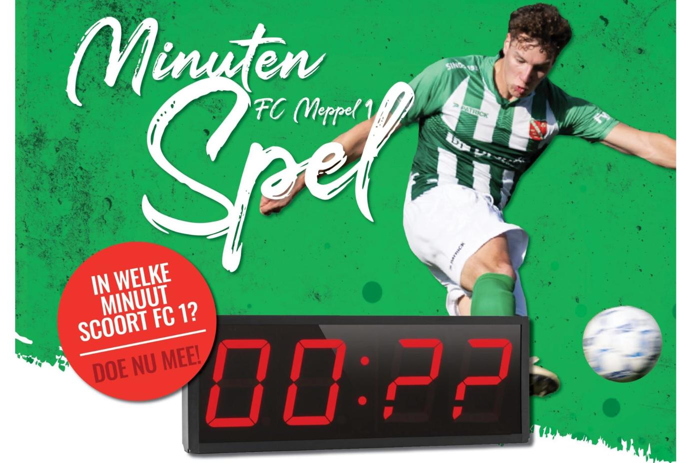 Wil jij kans maken op €100,-? Doe mee aan het minuten spel! Weet jij goed te gokken wanneer FC Meppel 1 scoort tijdens de thuiswedstrijden, dan win je de geldprijs! Lees de spelregels hieronder goed door!