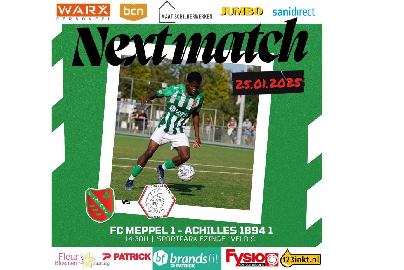 FC Meppel speelt de thuiswedstrijd tegen Achilles 1894 zaterdag 25 januari 14:30 uur