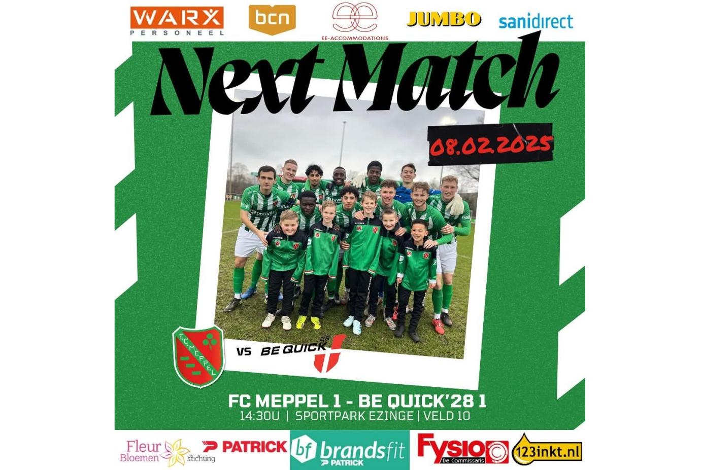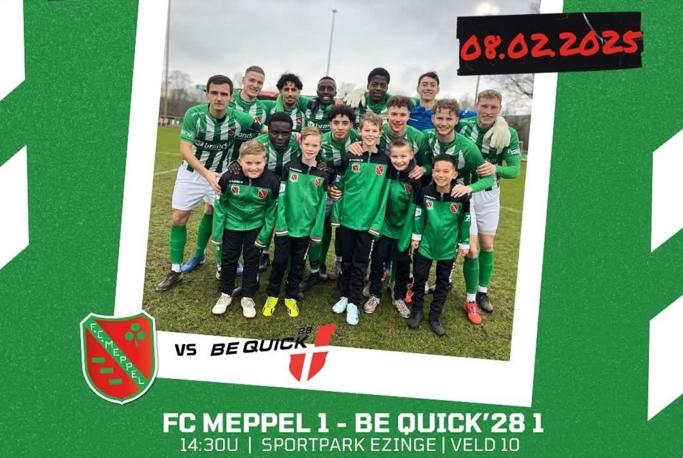 FC Meppel speelt de thuiswedstrijd tegen Be Quick'28 zaterdag 8 februari 14:30 uur
