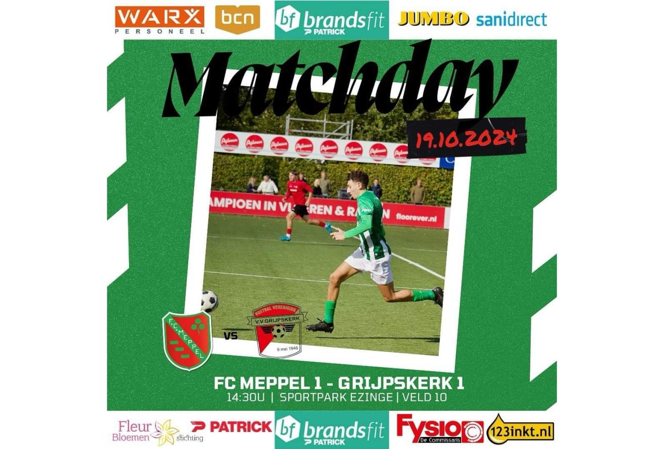 FC Meppel speelt de thuiswedstrijd tegen Grijpskerk zaterdag 19 oktober 14:30 uur.