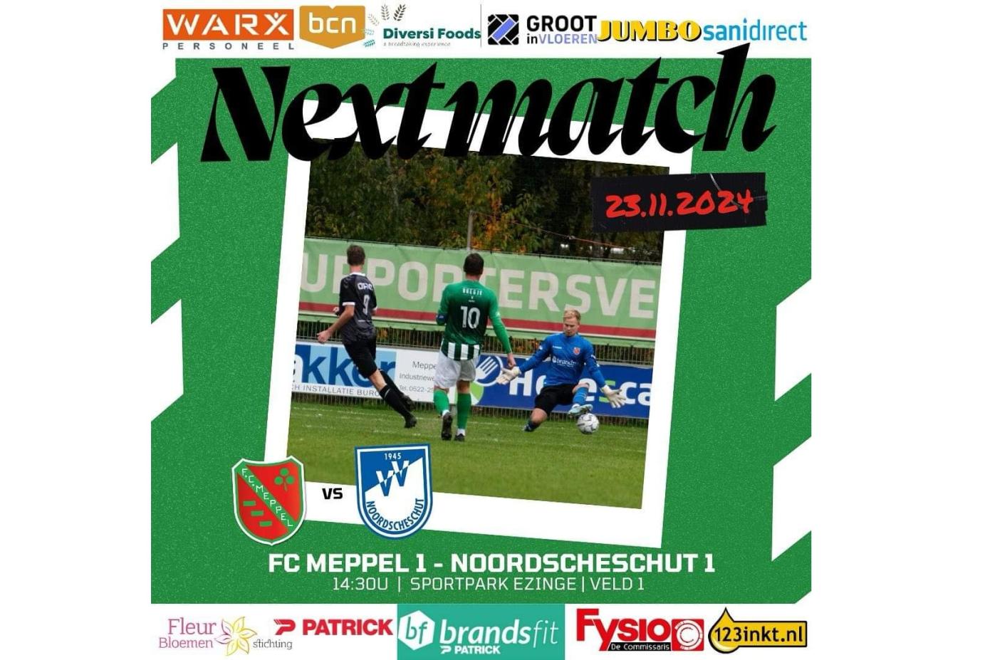 FC Meppel speelt de thuiswedstrijd tegen VEV'67 zaterdag 9 november 14:30 uur.