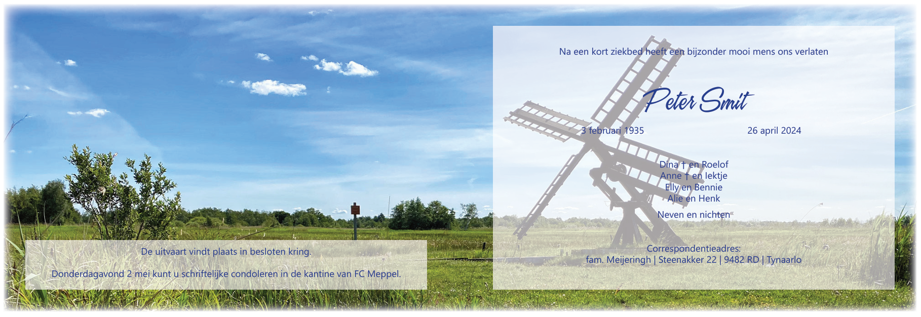 De uitvaart is in besloten kring. Op donderdagavond 2 mei van 19.00 - 21.00 is er in het clubhuis de gelegenheid om het condoleanceboek te tekenen.
