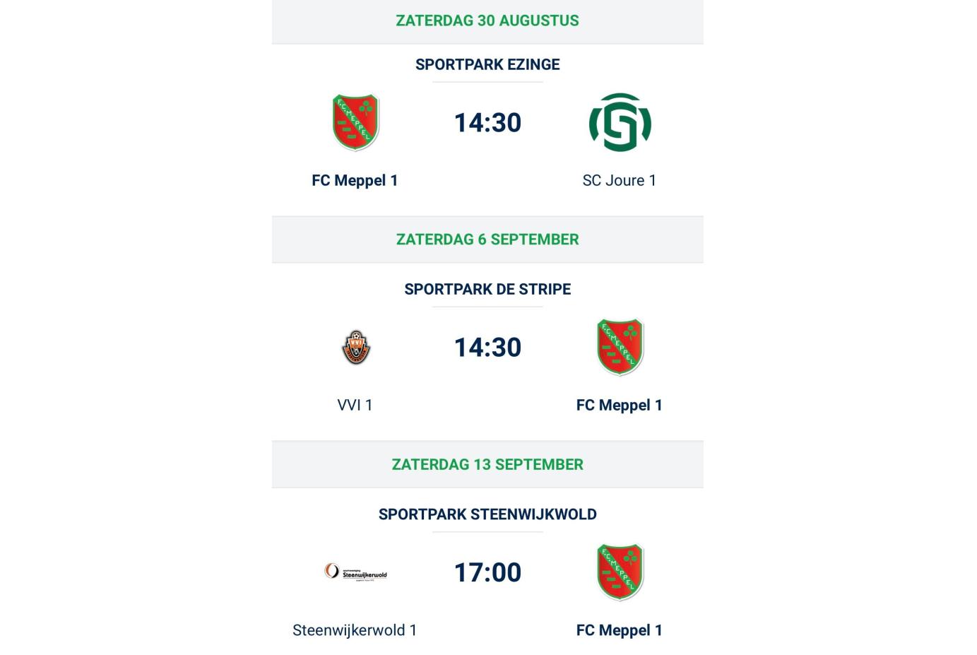 Om alvast in de agenda te noteren; de thuis en uitwedstrijden van de komende bekerronde van het 1e elftal.