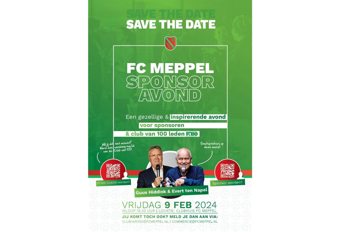 Meld je aan voor deze avond via clubvan100@fcmeppel.nl of via commercie@fcmeppel.nl