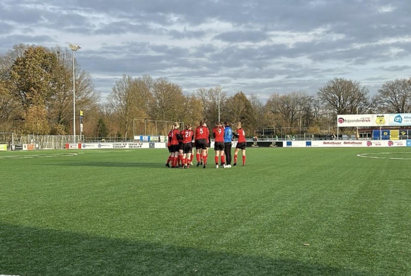 Dan op slag van rust komt er een schot van de zijkant van d’Olde Veste, die keepster Pien Tissingh niet wist te stoppen. 1-0 achter.