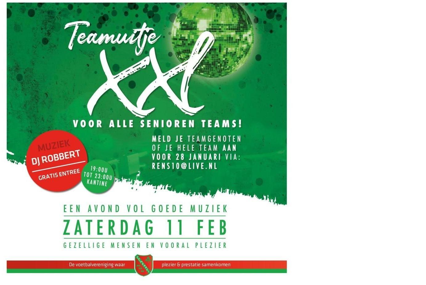 Op 11 februari is de kantine geopend van 19:00 tot 23:00u voor alle senioren teams! Entree is gratis en we vragen elk team om een lijst aan te leveren met wie er aanwezig zijn op ons TEAMUITJE XXL!! Wij ontvangen deze lijst graag vóór zaterdag 28 januari (rens10@live.nl). Het wordt een avond vol goede muziek, gezellige mensen en vooral plezier! Hier wil je bij zijn!!