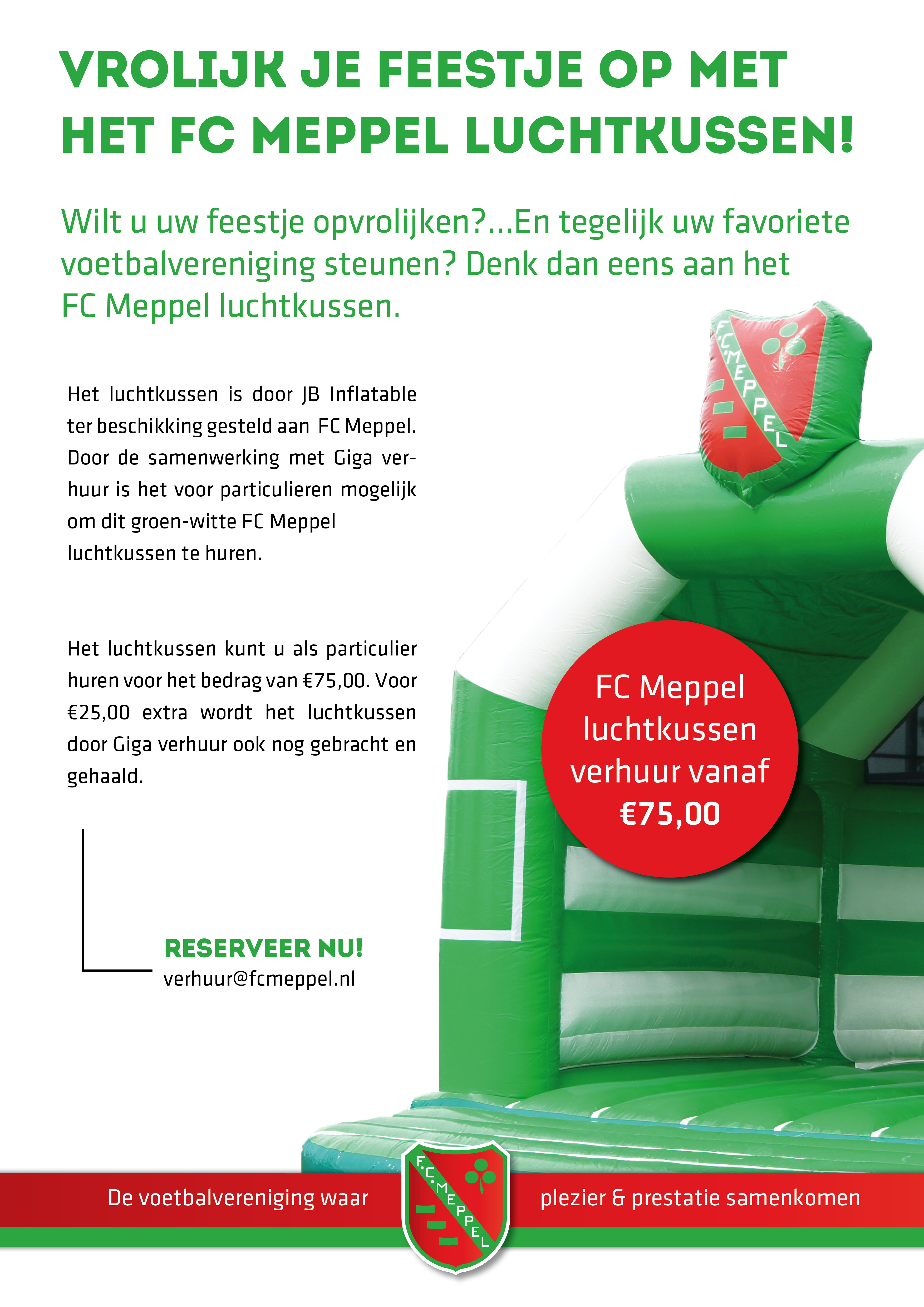 U kunt het luchtkussen reserveren via verhuur@fcmeppel.nl.